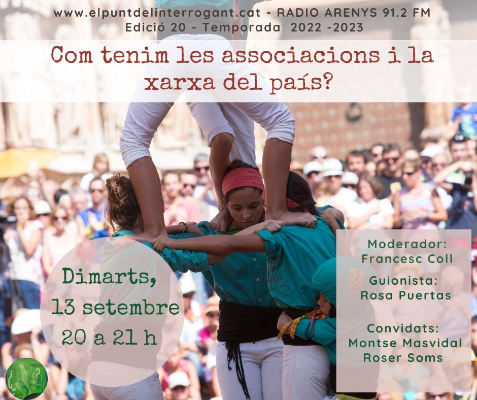 Les ASSOCIACIONS són ESCOLES de DEMOCRÀCIA, especialment en la industrialització del País, accés a APRENDRE dels més desfavorits, llegir textos en el Teatre Amateur, cantar sense saber música en els Cors d’Anselm Clavé… L’excursionisme com escola de Natura… Per tant, en aquest Guió del PUNT DE L’INTERROGANT, volem RETRE HOMENATGE a l’esforç de tota aquella gent, com hem dit, de l’Excursionisme, filosofia basada en el coneixement de la terra i de la seva gent, exaltació de la Natura, escola de Vida. Dels Orfeons musicals, dels Cors de Clavé, ingent feinada per incloure cantaires sense coneixements musicals, donada la seva extracció de les classes obreres i treballadores, en general.