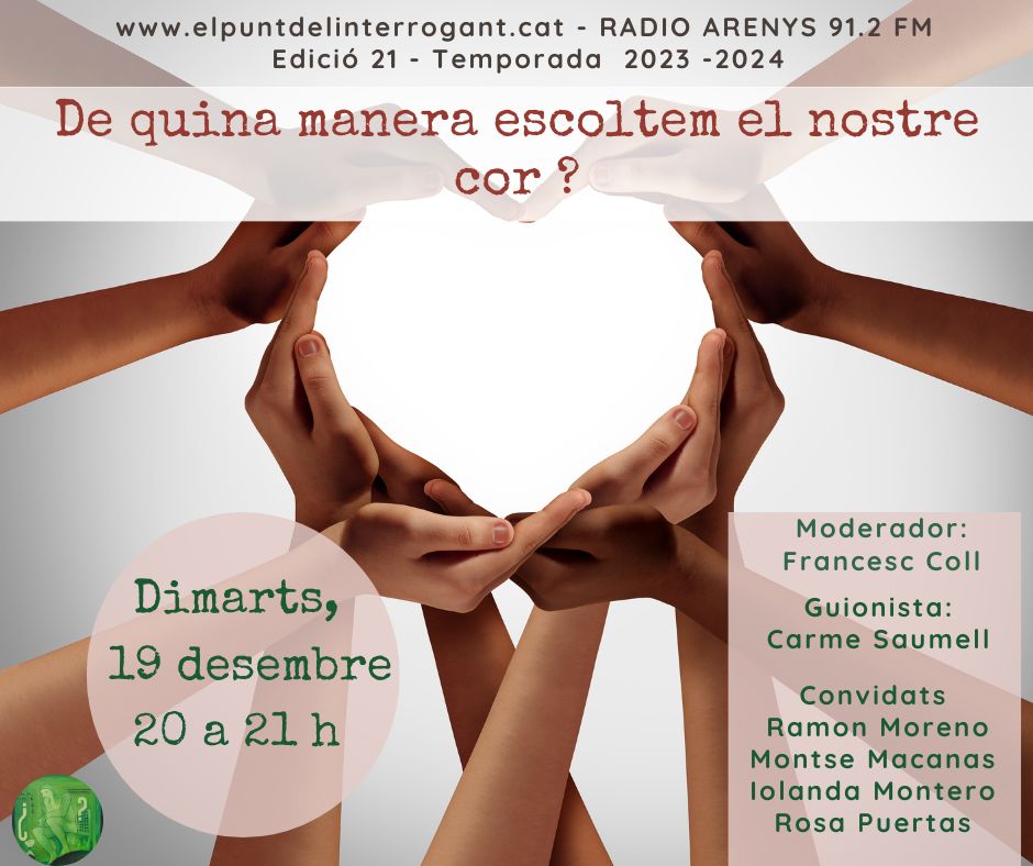 Aquesta és la pregunta d’avui en el punt de l’interrogant: de quina manera escoltem la veu del nostre cor, la seva intel·ligència, o potser el pla de la nostra ànima?