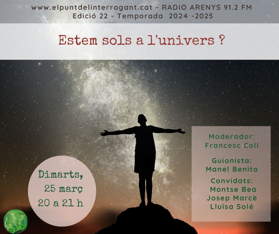 On està tothom? La qüestió no és si ja ens ha visitat o no, és simplement si podrem tenir contacte amb alguna civilització extraterrestre en cas d’existir. En tot cas, encara ens queda molt per conèixer d’aquest Univers, de la Física, de la Química i de la Biologia per poder donar una resposta definitiva.