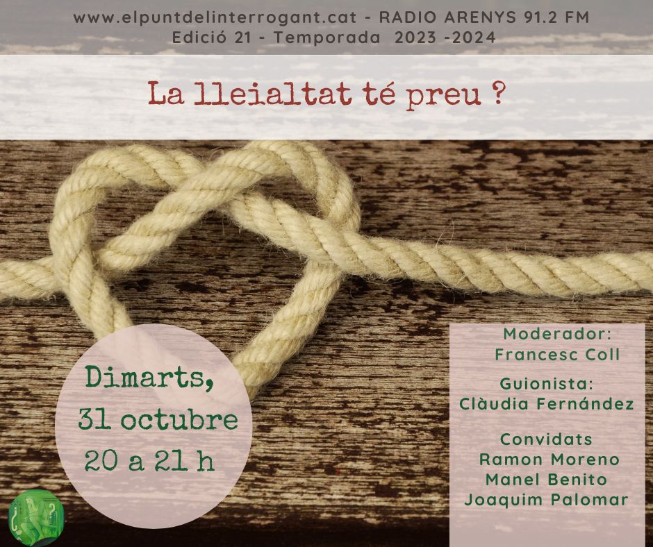 La lleialtat és una qualitat que es troba en les persones i els animals, i es refereix a l’afecte, la fidelitat o la devoció cap a algú o alguna cosa. La lleialtat és important en moltes relacions humanes, com les amistats, les relacions de parella i família o les relacions laborals. Les persones valoren la lleialtat com una qualitat positiva, ja que implica confiança i compromís amb els altres, guarda escrupolosament la fidelitat deguda, una persona lleial és incapaç de fer traïció. La pregunta que n’ateny avui, té preu la lleialtat?, ens fa revisar sens dubte aquesta definició. Pot tenir conseqüències una qualitat humana aparentment meravellosa? Doncs està clar que sí i no poques. En diferents àmbits de la vida la lleialtat pot tenir conseqüències tant positives com negatives. Us presento algunes: Conseqüències positives: