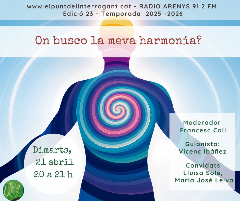 Si ens ho mirem bé, trobarem sovint que les arrels dels problemes i les solucions no estan “fora”, sinó “dins”, en la manera en com hi pensem, sentim i reaccionem. Deixar, doncs, de buscar “fora” i mirar-nos “dins”, deixar d’evitar el que no ens agrada i qüestionar-nos si podem viure-ho d’una altra manera, és un pas important, clau, per anar descobrint tot allò que ens priva de viure en harmonia.