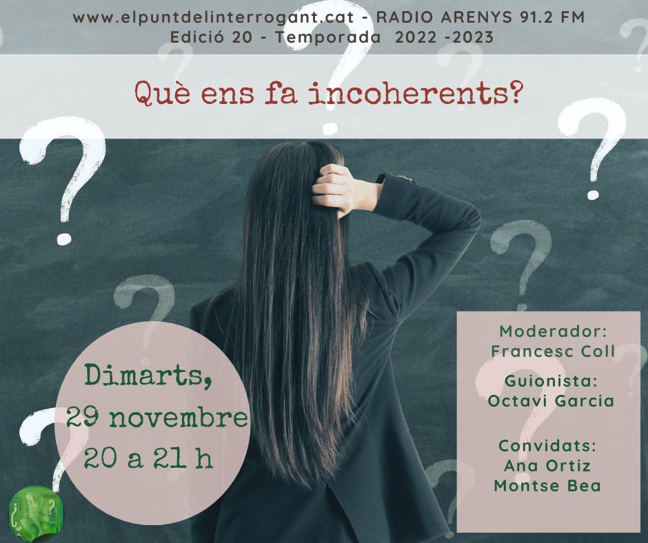 Molts motius i circumstàncies ens fa incoherents. Però sospito que el creador d’aquest títol partia d’un supòsit gens evident: que la incoherència és una conducta negativa. Són sinònims d’incoherència: incongruència, contradicció, absurd, desficaci, barbaritat, ximpleria…..Es diu que un subjecte és coherent quan la seva actitud és conseqüent amb la seva postura mental. S’observa correspondència entre la seva manera de pensar, sentir i d’actuar. En altres paraules, és l’alineació del que es creu, es diu i es fa. Així ho explica també la definició de Charles Kiesler publicada tres dècades abans de la categorització de Cialdini, que entén el principi com “el vincle que existeix entre l’individu i els seus actes”.