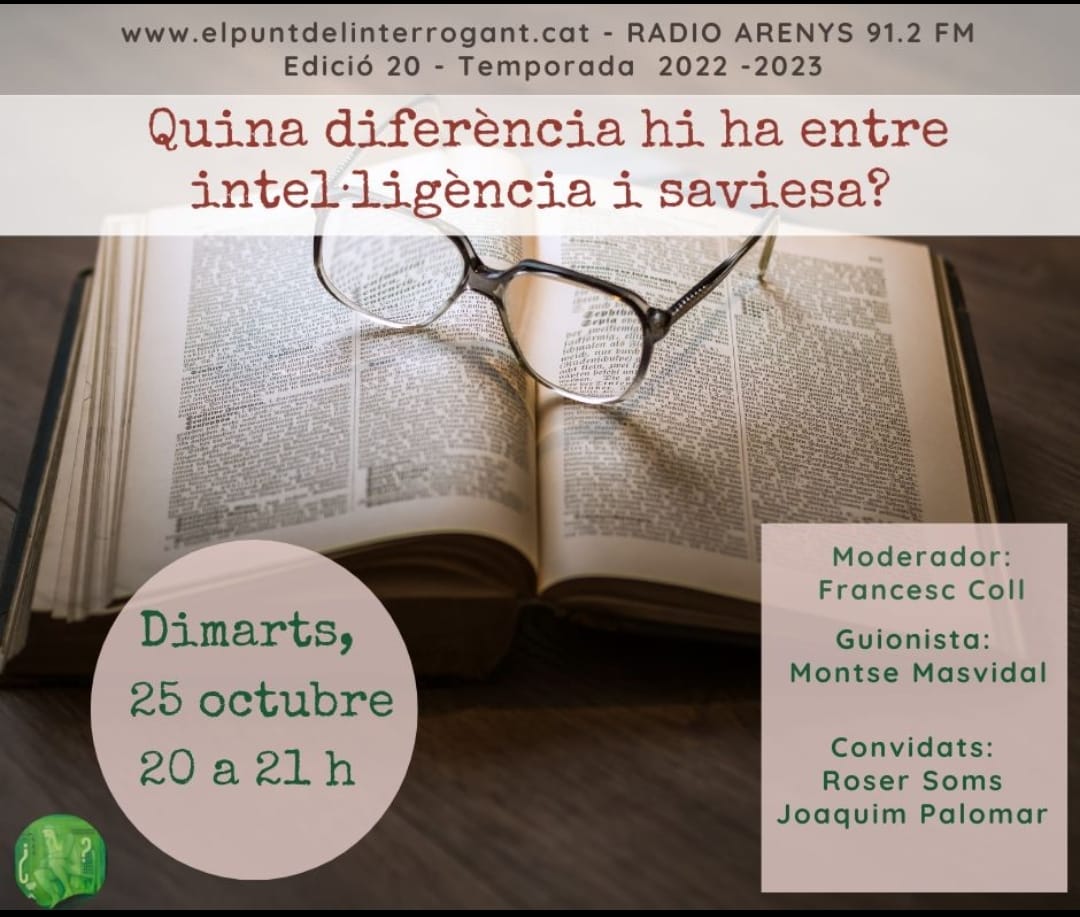 Avui tenim un interrogant dels de pensar. I per desenvolupar la pregunta de: Quina diferència hi ha entre intel·ligència i saviesa?, espero que ho fem de forma intel·ligent i sàvia.